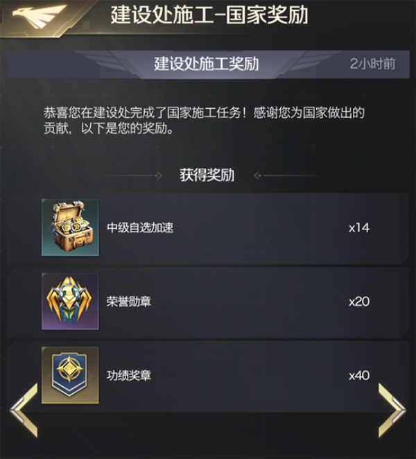 选择完成国家版的施工任务,可以更快重建其他国家建筑,而这些建筑的收益对国家内每个人都有效果,越早建好,越早收益。