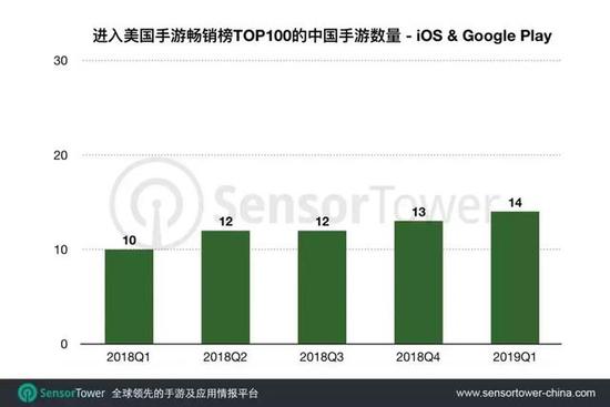 Sensor Tower发布了《2019Q1美国手游市场趋势及中国厂商市场份额》的观察。